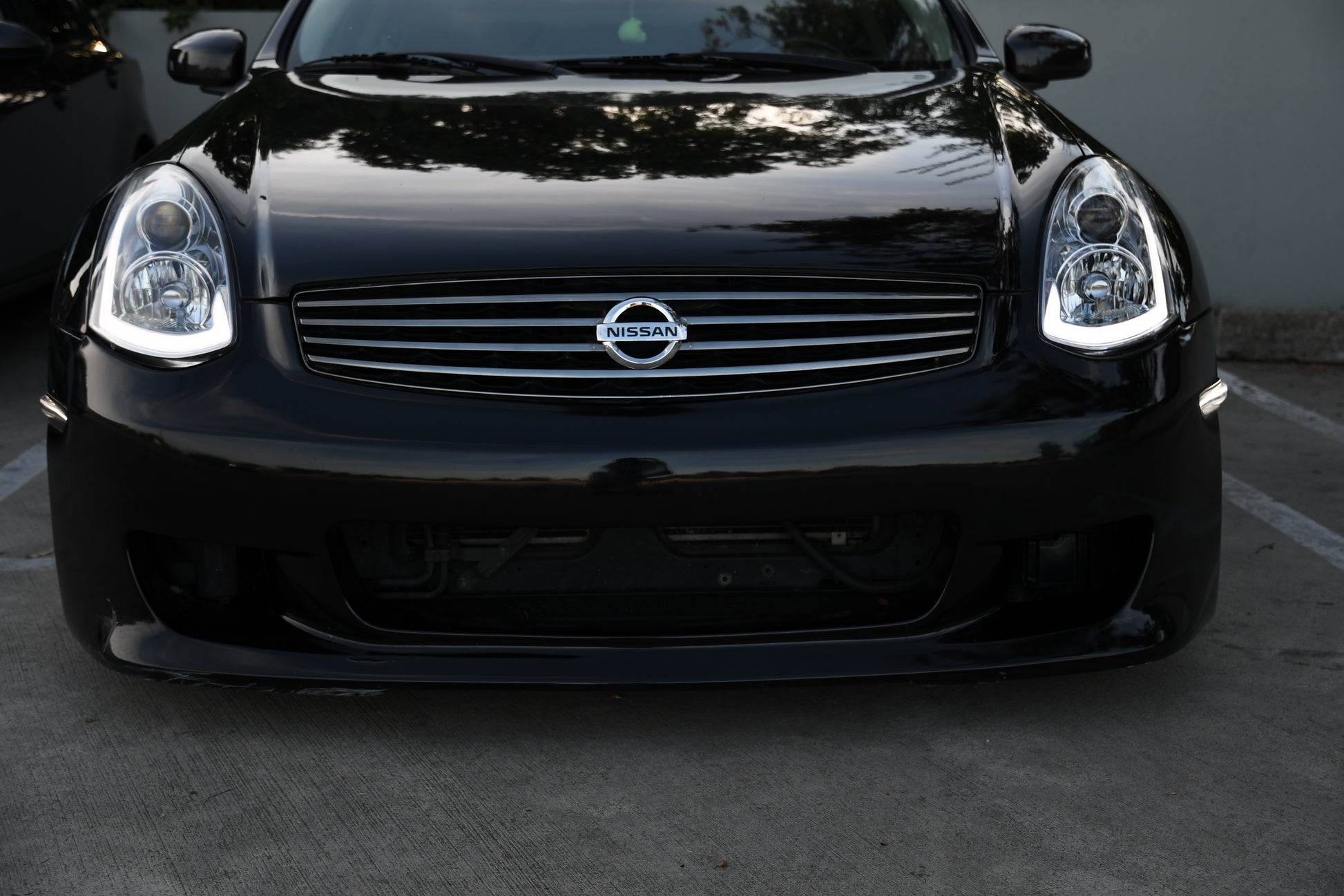 The VQplug signature side markers have a Bright White daytime running LED Strip and also have an optional Sequential Turn Signal Mode, that flows with the turn signal of aftermarket G35 headlights. Available in Clear and Smoked Lens Versions.