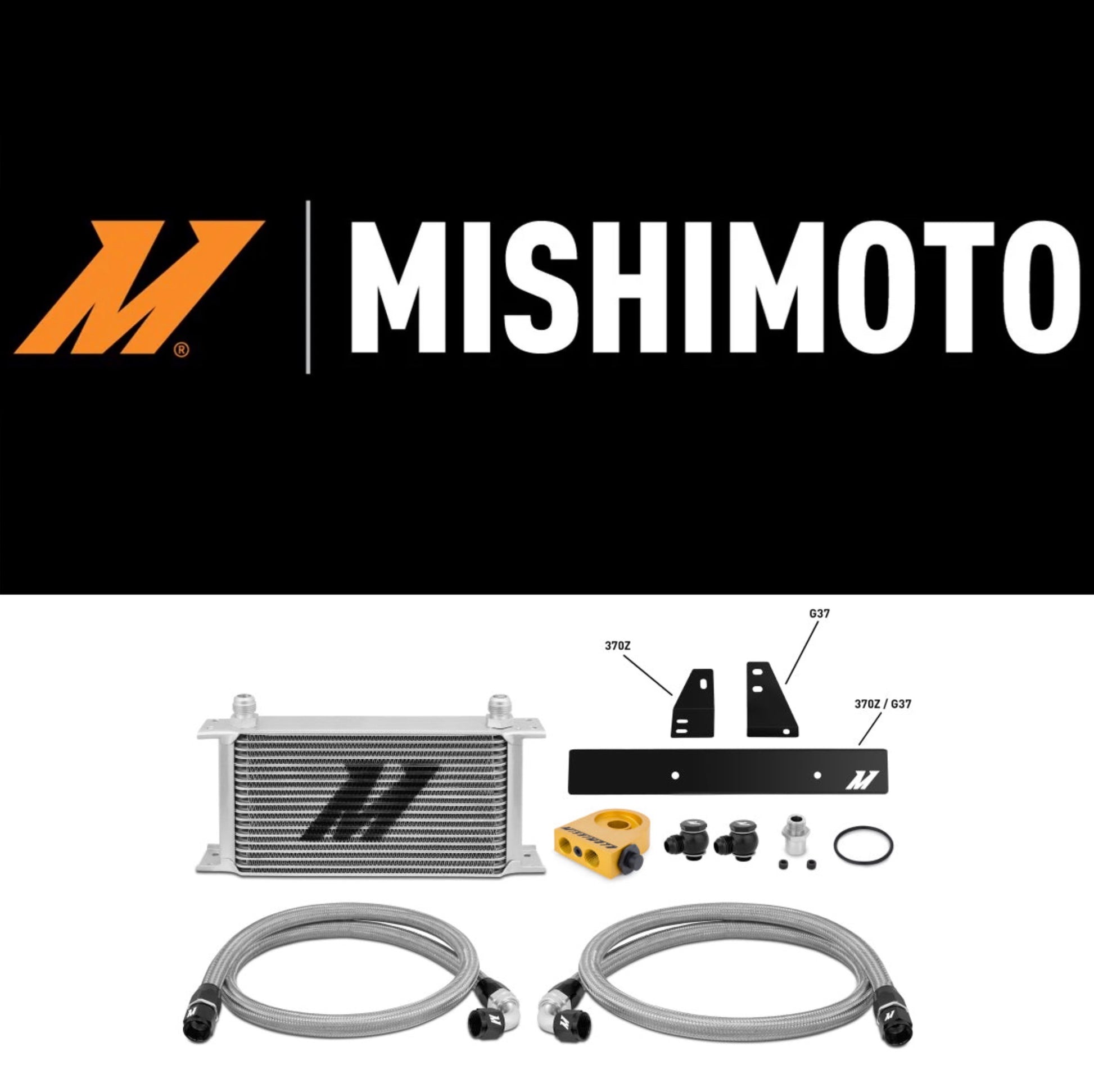 Mishimoto proudly announces the all-new Nissan 370Z, 2009+ / Infiniti G37, 2008+ (Coupe only) Oil Cooler KIt'specially designed for your Nissan 370Z and Infiniti G37, the Mishimoto 370Z oil cooler kit is a direct fit and is beneficial to both manual and automatic applications.Enthusiasts who drive their high-performance cars on or off the track know the importance of keeping their oil temperatures in control to prevent damage, or even seizure, of the engine.The Mishimoto oil cooler kit is available with an optional thermostatic sandwich plate for safe daily-driver warm up and additional operating temperature control.Offered with either a black or silver cooler, the Mishimoto Infiniti G37 / Nissan 370Z Oil Cooler Kit includes a Lifetime Warranty, so you know quality is guaranteed!